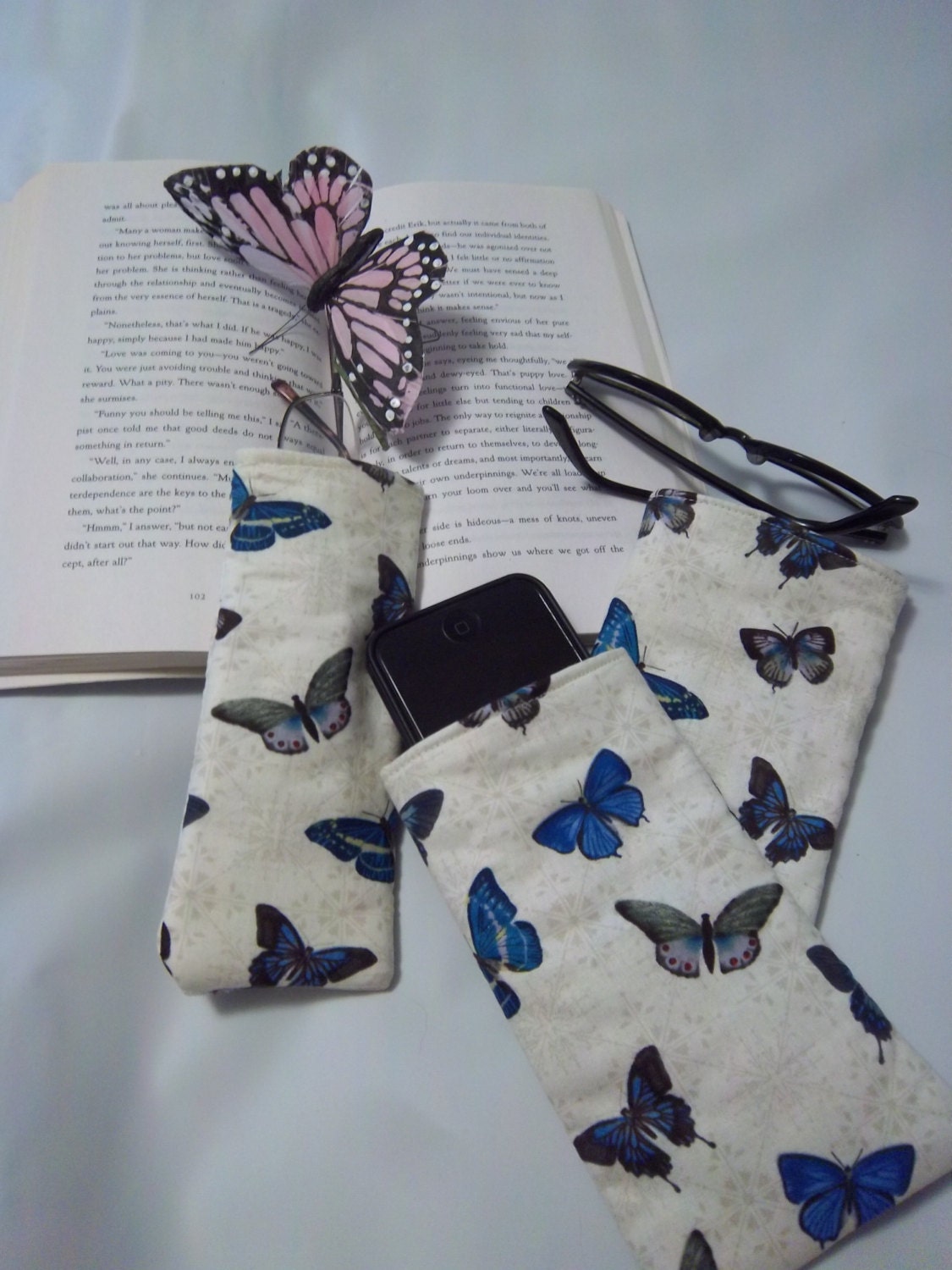 BLUE BUTTERFLIES on Affordable Washable Quilted cotton Eyeglass cases, iPhone case, reading glasses case