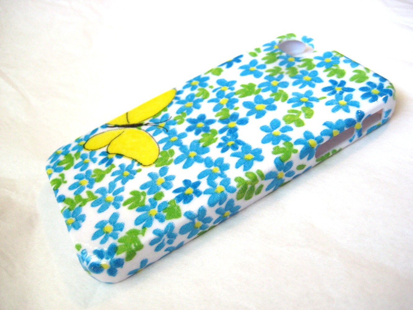 Blue Flowers and a Yellow Butterfly iPhone 3, 4/4S, 5/5S, 5C, 6 or iPod Touch Case Cell Phone Cover