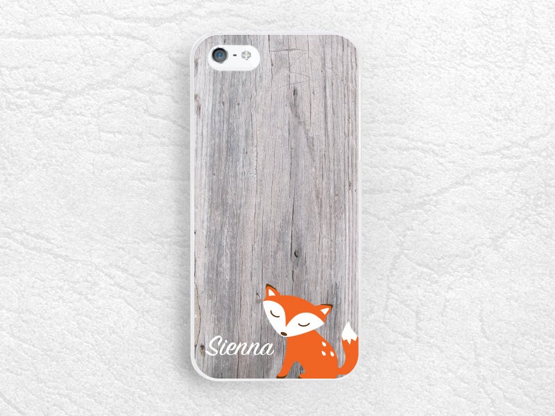 Cute Fox Monogram wood print Phone Case for iPhone 6, Sony z1 z2 z3 compact, LG g2 g3, Moto X Moto G, HTC personalized case with custom name
