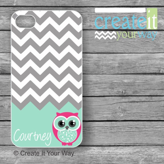 iPhone 5 Case, iPhone 6 Case, iPhone 6 Plus, iPhone 5C case, iPhone 5s, Samsung Galaxy S5 Case - Gray Chevron with Cute Owl and Custom Name