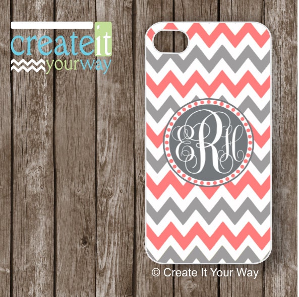iPhone 6, iPhone Plus Case, iPhone 5s Case monogram - iPhone 5 case chevron - Coral and Gray Chevron, Samsung S5 case, Samsung S4 Case