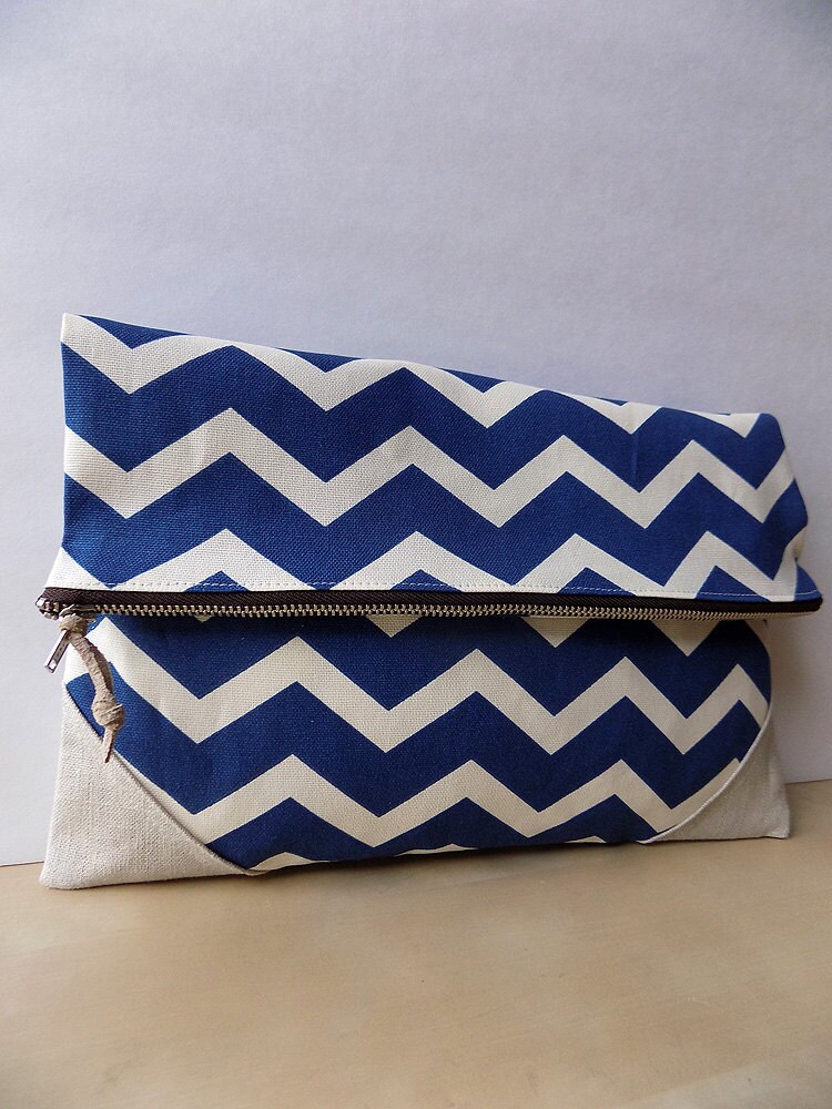 Navy Zig Zag - Foldover Clutch Purse